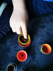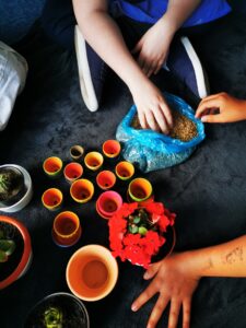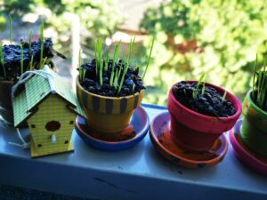 Educaţie senzorială, motorie şi psihomotorie: am plantat în ghivece grâu.