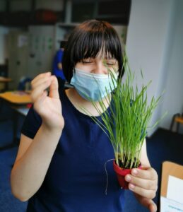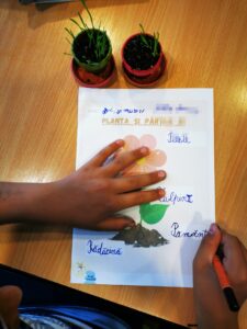 Abilităţi de comunicare: am discutat despre ce are nevoie grâul să crească: pământ, apă, lumina. În fiecare dimineaţa, când veneau la şcoală primul lucru pe care îl făceau era să udă grâul. Le-a plăcut mult să aibă responsabilitatea asta pe care o făceau în lipsa mea. După ce grâul a crescut am scris care sunt părţile componente ale unei plante.